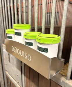 Die Multibox ist unsere kompakte Lösungen für die Futterorganisation bei wenig Platzangebot. Aus hochwertigem Aluminium gefertigt, bietet diese elegante Halterung Platz für die Verstauung von 4 säulenförmigen Dosen zur Futteraufbewahrung. Mit einem Fassungsvermögen von 2 Litern pro Dose ist auch bei dieser Variante genug Stauraum für eine ausreichende Mahlzeit für Ihr Pferd. Besonders bei schmalen Stallgassen eignet sich die Multibox durch ihre geringe Tiefe und verschwendet so keinen wertvollen Platz.