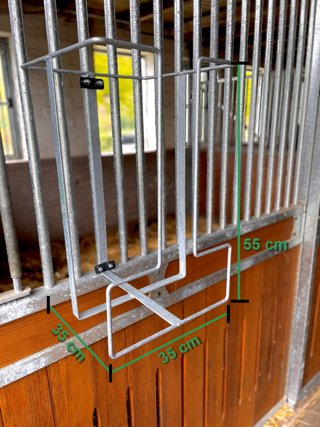 - Flexible Befestigungsmöglichkeiten an den Boxengittern oder Wand.